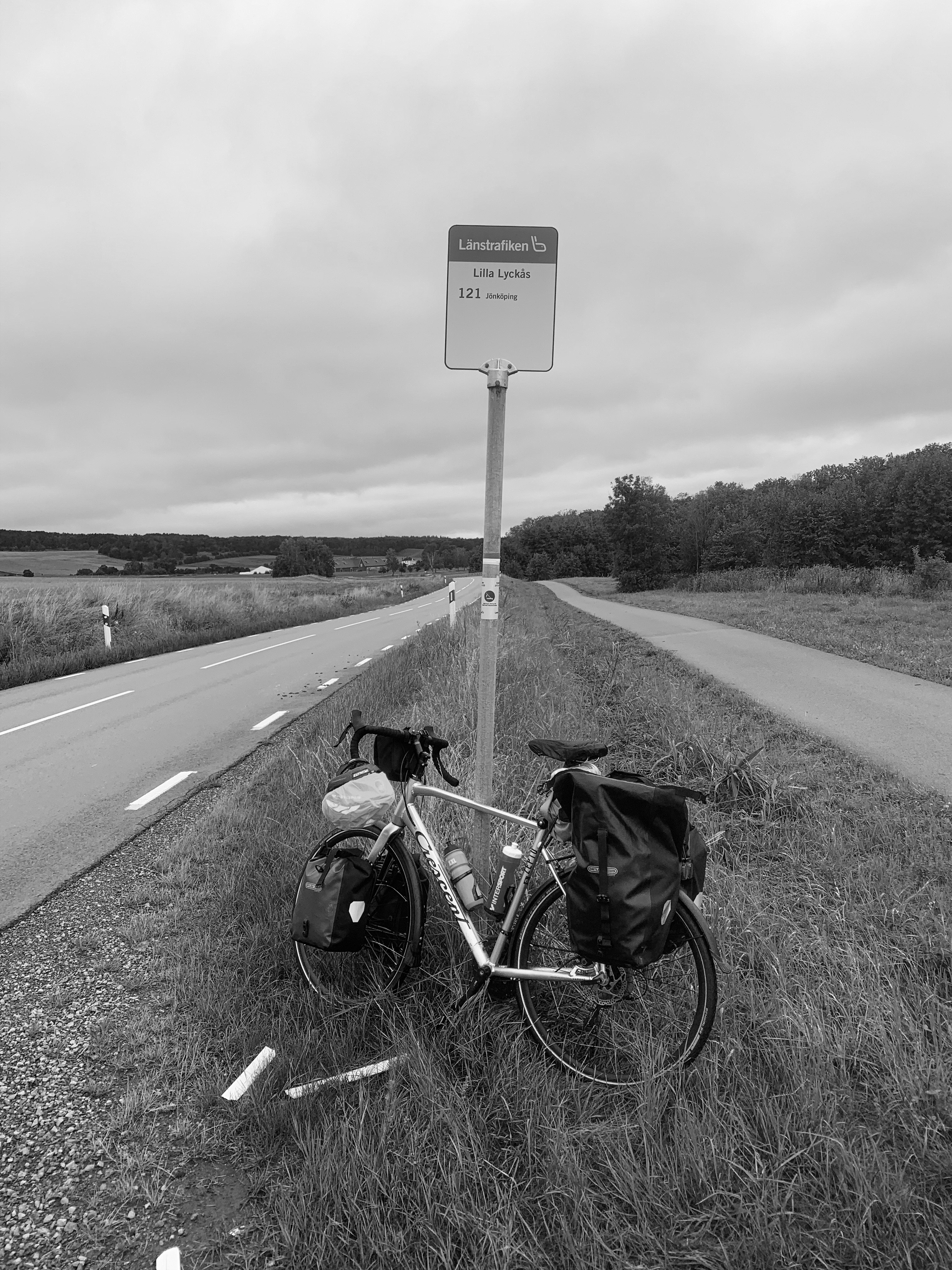 Efter ungefär 60km så stannade jag vid en mack för att fylla på glassdepån och då rullade det in en ung kille på cykel och började prata. Visade sig att han var från Hamburg och var påväg till Stockholm. Jag fick bra info angående Corona samt vad som gäller angående munskydd i Tyskland. Ytterligare ett trevlig möte på resan.