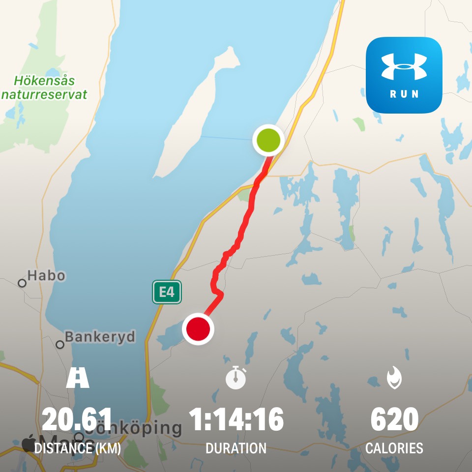 Lyckades såklart avsluta och spara MapMyRun efter 20km så här kommer två kartbilder