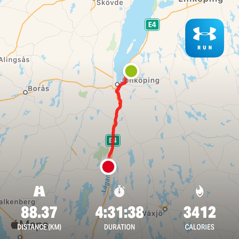Stack från Gränna 8:30 imorse i sällskap med ett lätt duggregn. Enligt Google Maps så är det en total stigning på 510m mellan Gränna och Värnamo. Tror nog jag rev av minst 150m den första halvtimmen. Men trots den inte så mjuka starten på dagen så måste jag säga att jag är väldigt nöjd med dagen. Det blev tillslut 110km och ett nytt distansrekord för mig. Nöjd!