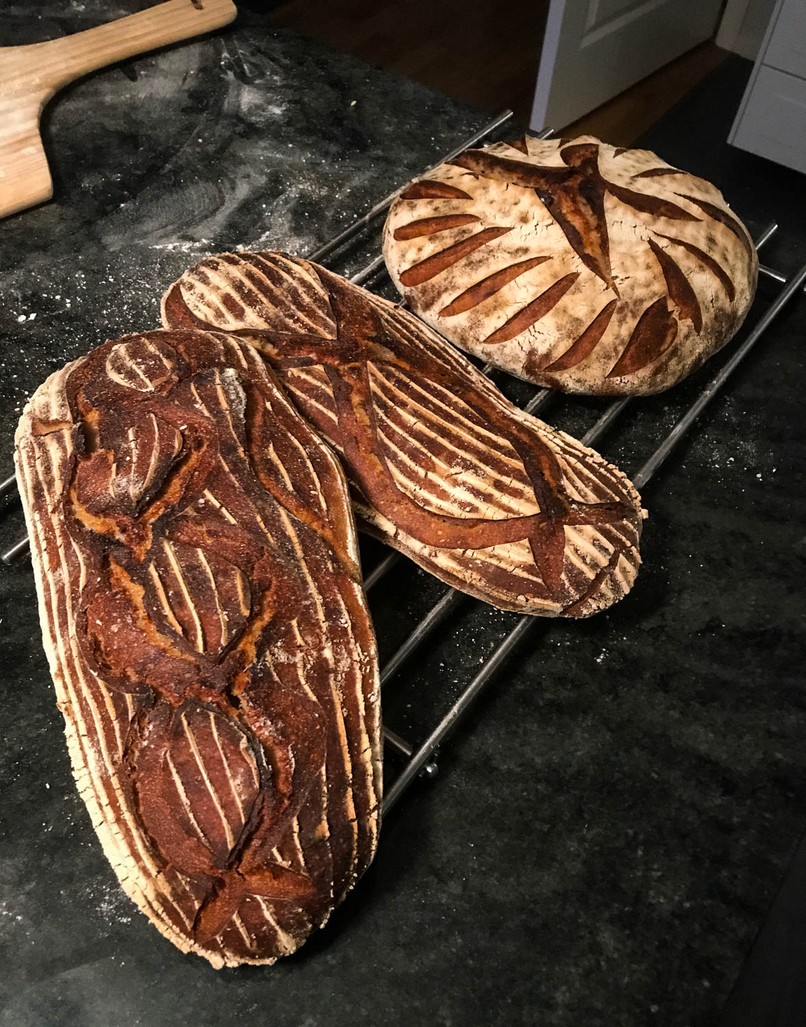 Jo, det är så här. Jag kan som mina vänner och min fru vet bli rätt manisk när jag börjar med något nytt och tyvärr för mig och Gunilla så gick jag och köpte en brödbok av Sebastien Boudet vilket har resulterat att det står surdeg, mjölpåsar och oraffinerat salt på de mest osannolika ställen i köket. Jag har blivit lite besatt och det känns jävligt bra. Tack för det Sebastien! Som tur är för oss så bor Ellinor och Rob inte så långt här ifrån så vi får hjälp med att äta upp brödet. Annars blev det nog full frys snabbt.