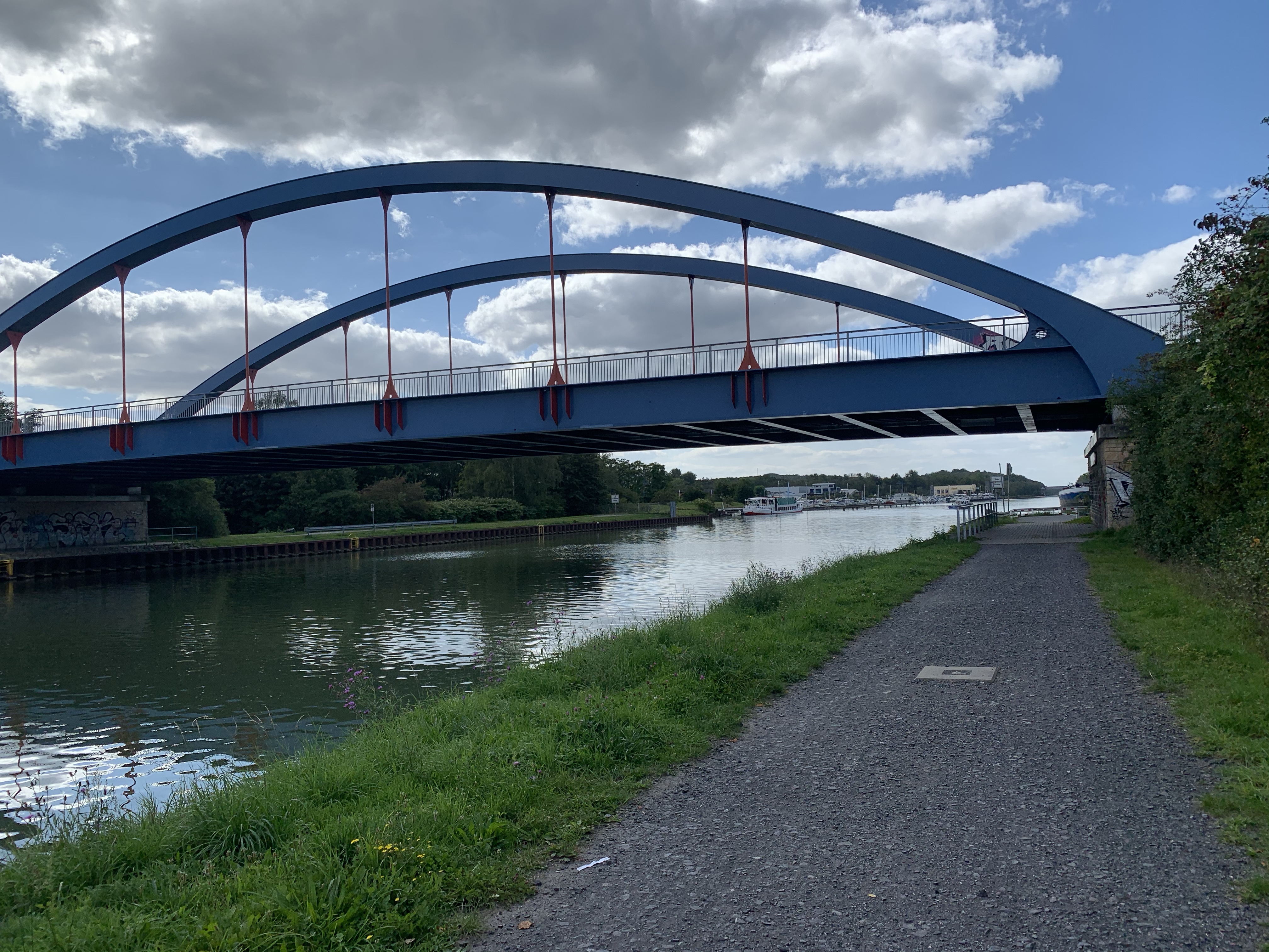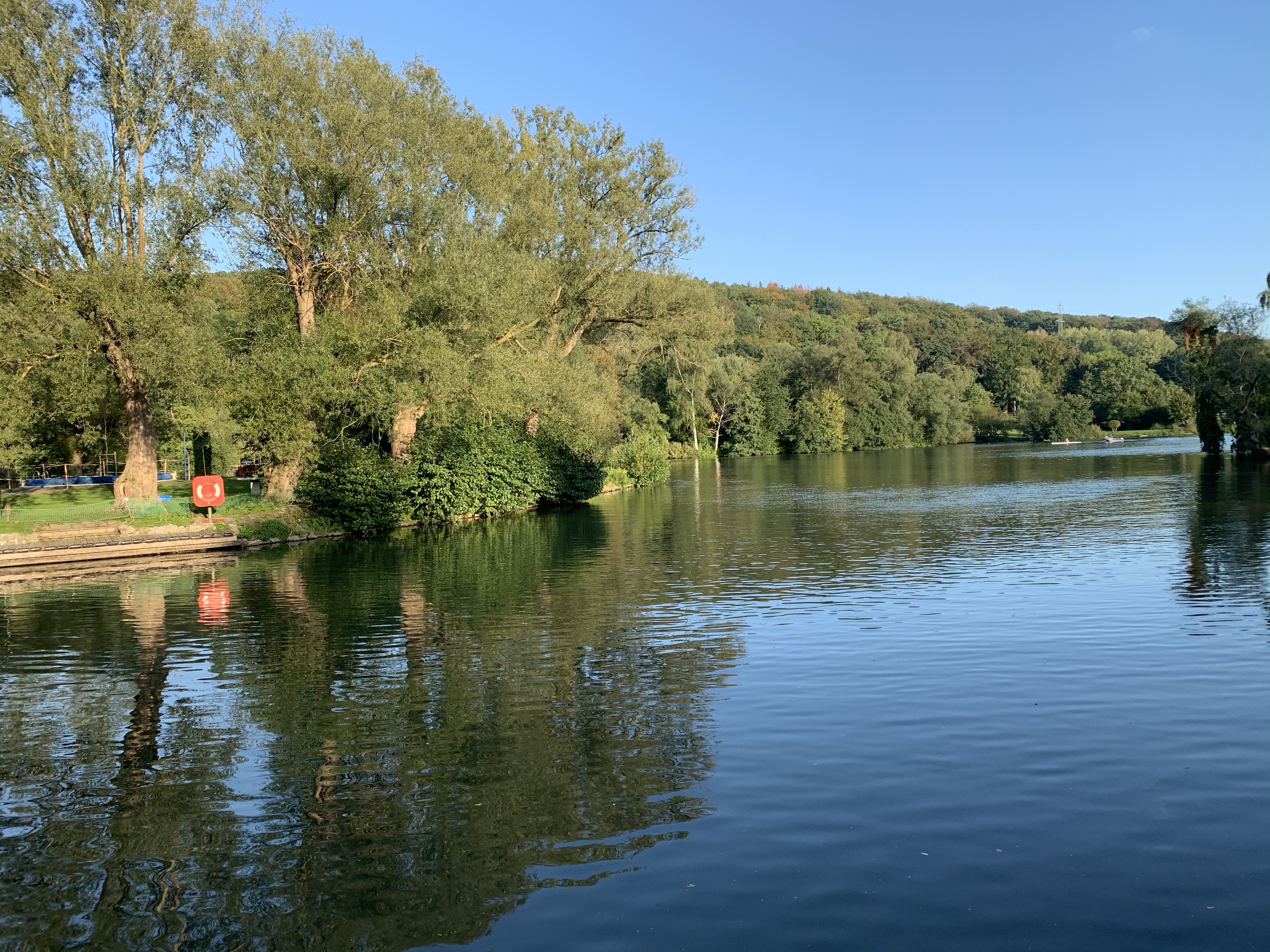 Efter 126km och efter att passerat Dortmund kom jag fram till Hans-Peters camping. Receptionen hade stängt klockan 15. Och jag var pissnödig så det kluckade i öronen. Panik! Men lite längre bort stod det en äldre herre och rollade bottenfärg på en roddbåt. Gick fram och körde ”gäster med gester” att jag ville tälta och var i stort behov av en toa. Visade sig att det var Hans-Peter själv jag fått tag på. Jag fick en tältplats och efter det sedvanliga pappersexercisen gällande Corona kunde jag sprinta mot närmaste toa. Ett kilo lättare smällde jag upp tältet och duschade av dagens salt och ammoniaklager. Skönt!
