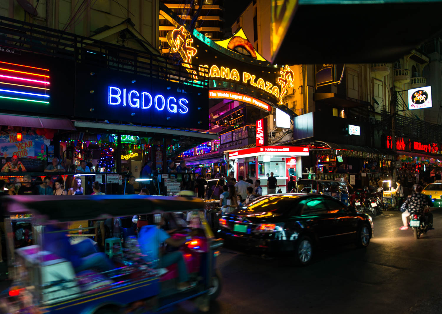 Nu är det så att hotellet som jag har valt ligger inte alls långt ifrån en av de värsta bordellgatorna i Bangkok och för att komma ut på Sukumvith så är jag nästan tvungen att löpa gatlopp. Det påminner av en sämre version av Gladiatorerna. Om jag fick som jag ville så skulle alla jävla torskar som letar efter småtjejer tacklas omkull och släpas i skiten till kalsongerna ramlade av. Efter det så vore det bra om Egyptens alla gräshoppor hemsökte deras könsorgan.