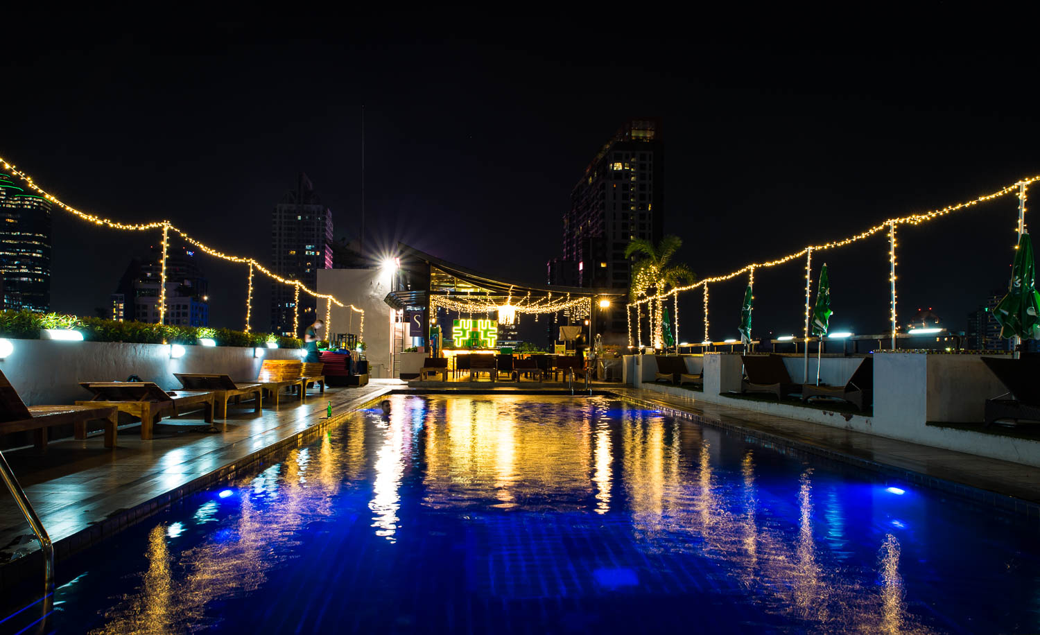 Vi bor nu på Furama Silom, ett aningen bedagat hotell som nog har sett sina bästa dagar, men vadå, för 500kr natten för ett dubbelrum inklusive en stor frukostbuffe för två personer måste man säga är helt rimligt. Som grädde på det så kallade moset så finns det ett ”gym” och en rooftop pool på hotellet. Poolen har sol hela dagen, det är något som inte är helt vanligt i Bangkok med alla skrapor som brukar vara i vägen.
