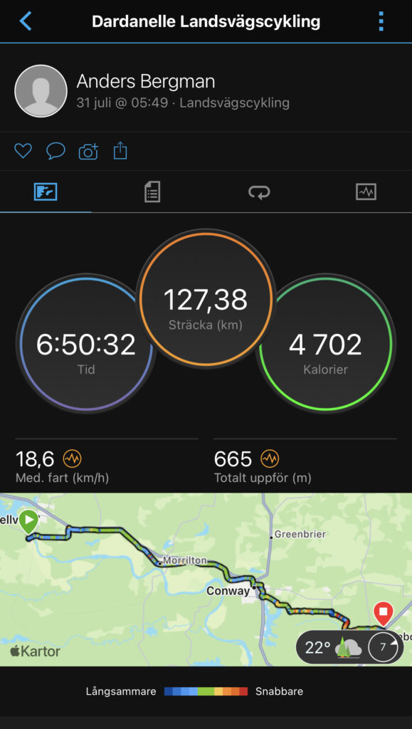 Idag har det nästan varit som att cykla i en regnskog. Låga moln som nästan nuddat trädtopparna och fukten efter allt regn som kommit. Ska bli spännande och se hur det blir imorgon när solen tydligen ska komma tillbaka och värma upp allt igen. Ångbastu?