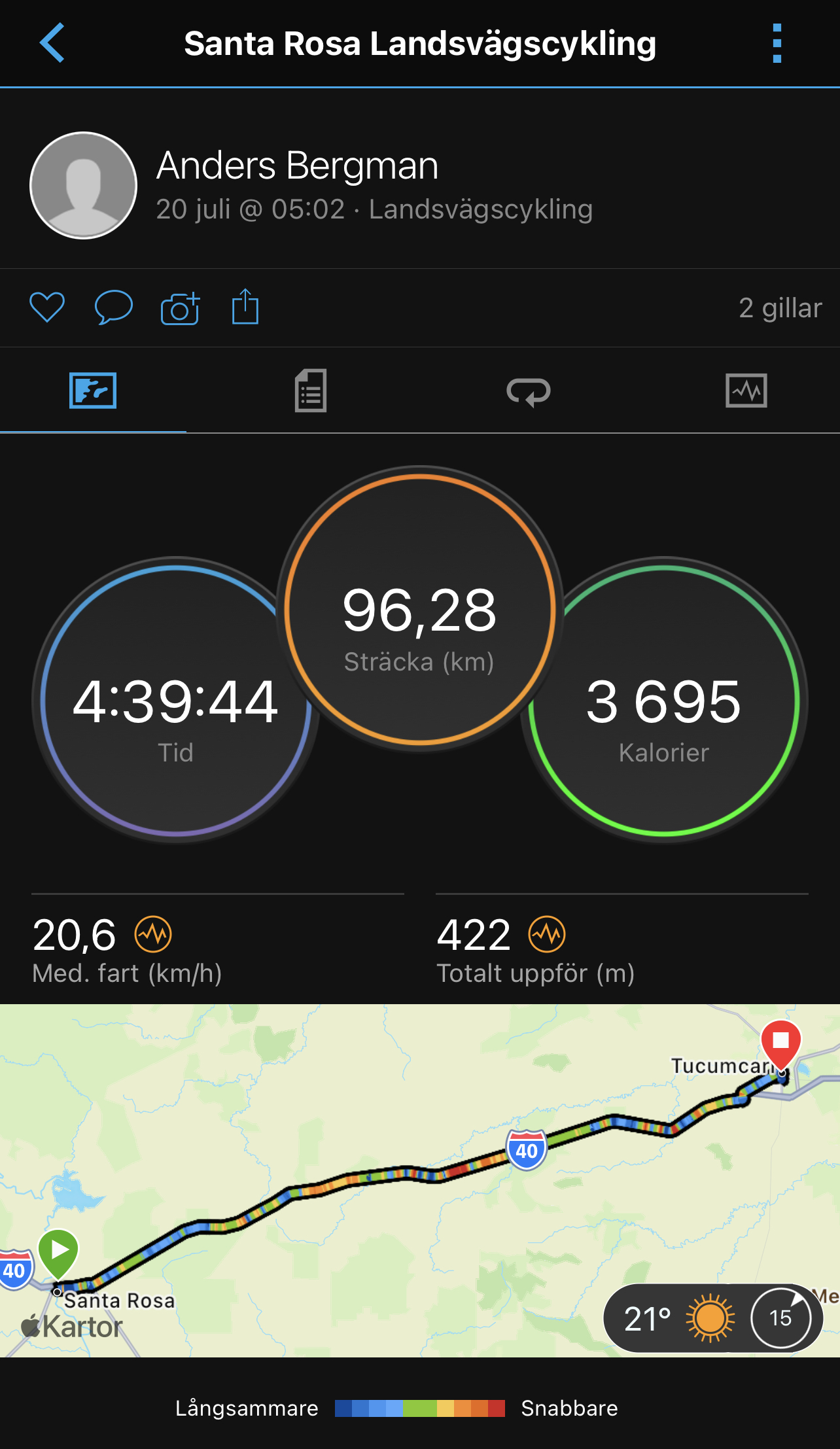 Idag så har jag kommit 184mil in på rutten. Alltså är mer än en tredjedel avklarad. Det gäller att sätta upp delmål för en sån här resa och glädjas när de är avklarade. Om inte så skulle nog hela projektet kännas helt oöverstIgligt. Återstår att se när jag kommer halvvägs.