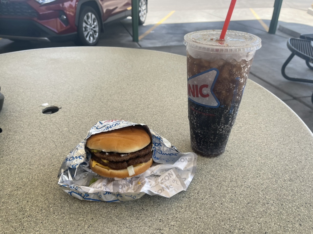 Första stopp blev Fat Tires Bicycles som ligger 5km från motellet. Blev supertrevligt bemött av tjejen i kundtjänst och fick mig en snabbkurs i hur man gör däck så punkteringsfria som det går. Det innefattar bland annat en slang som har fyra gånger så tjockt gummi samt en tätningsvätska som fylls på i slangen när den installeras. Köpte två nya slangar och vätska och begav mig sen ut på jakt efter ett nytt bakdäck. Tror jag cyklat runt och letat däck i flera mil idag men tyvärr utan lycka. Så tillbaka till Fat Tire Bicycles för att byta ut den ena slangen så den skulle passa däcket som sitter på nu. När jag stod där så passade jag på att fråga om de inte kunde göra jobbet också. Jovisst, det skulle gå bra. Så jag passade på att få i mig lite lunch medans jag väntade. Och vad skulle kunna passa bättre än en cheesburgare med en jätteläsk😂