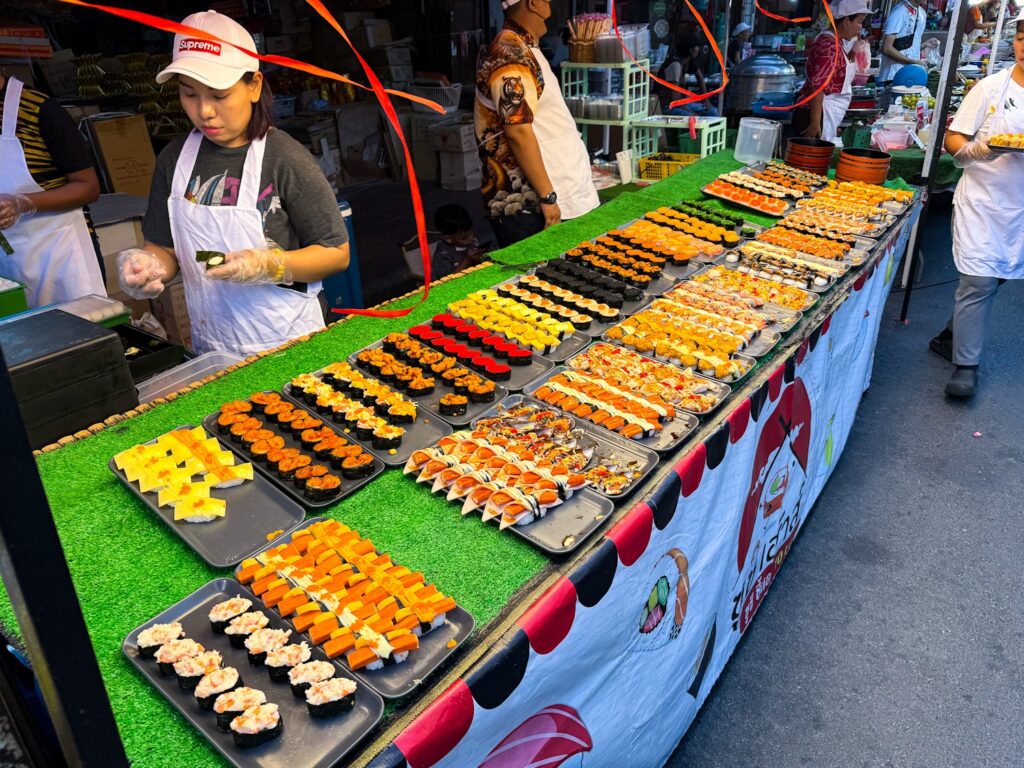 Lite senare efter rast och vila på rummet så blev det en promenad till nattmarknaden för en middag.