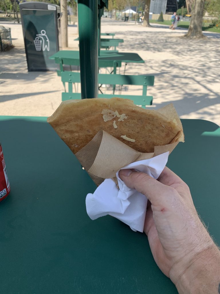 Nog med gnäll nu för som vi pensionärer säger, sent om sider kom jag fram till Eiffeltornet och firade med en Cola och en crêpes.