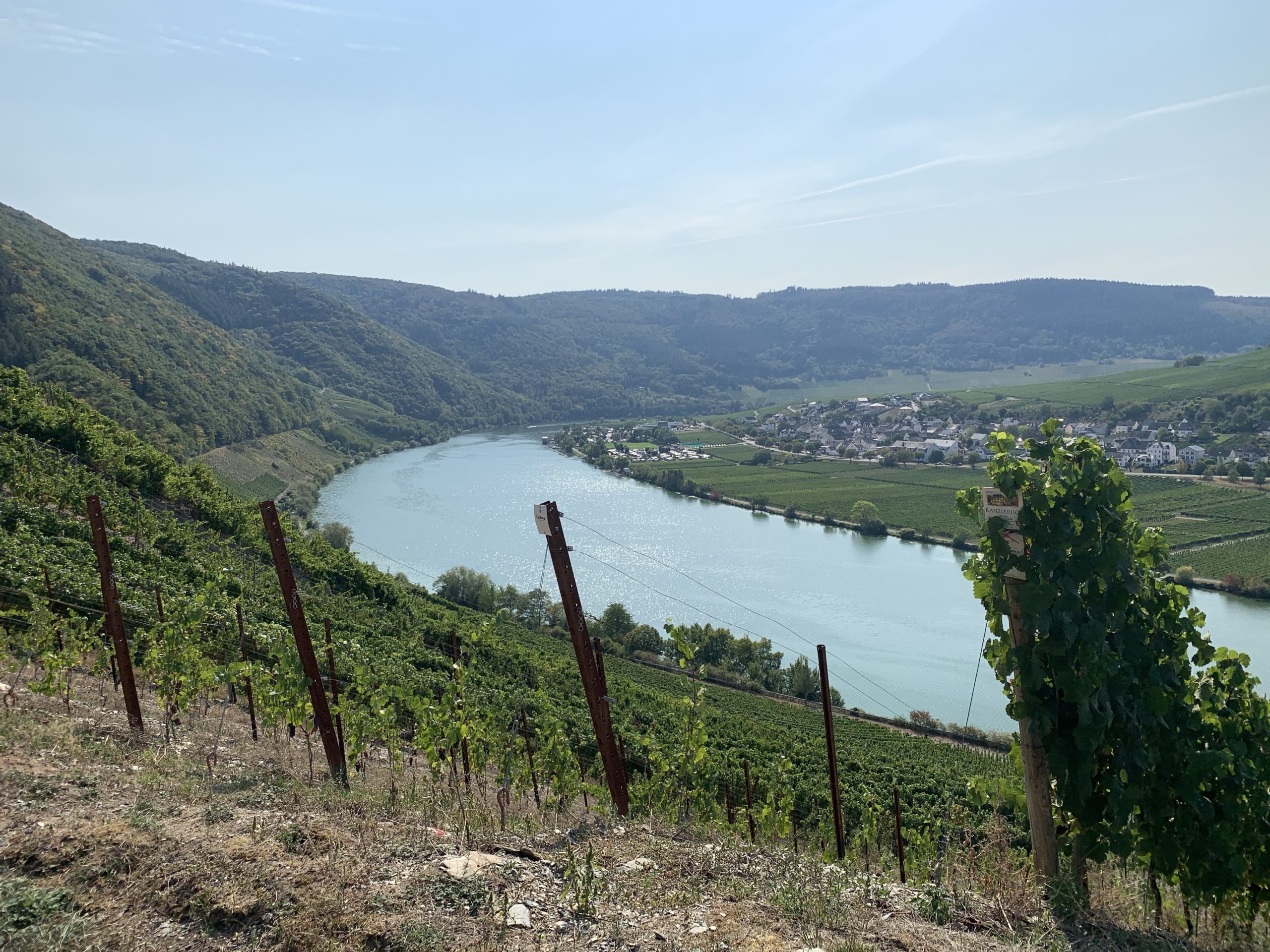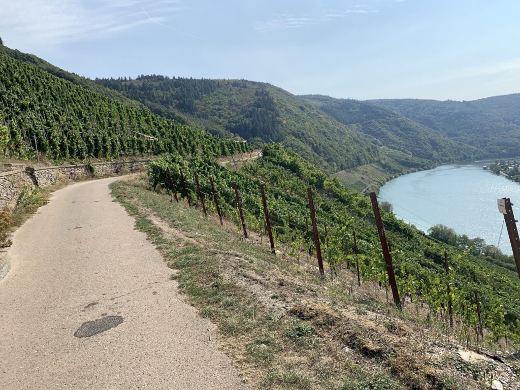 Frukosten på Hotel Bacchus var helt enastående. Bästa hittills på resan. Så det var på nytankade och starka ben jag satte av mot Trier. Och precis som det varit de sista dagarna så var utsikten från cykelsadeln helt fantastisk. Vinodling efter vinodling på sluttningarna som omger Mosel.