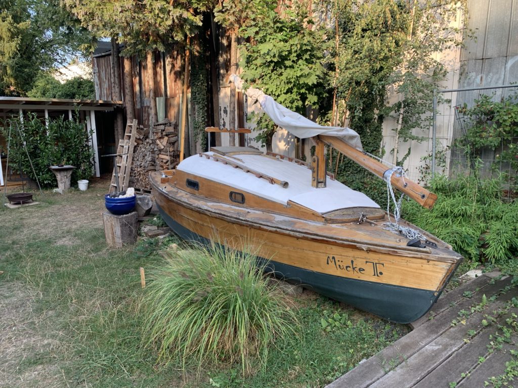 Klart man ska ha en gammal träbåt i trädgården. Det har väl alla?