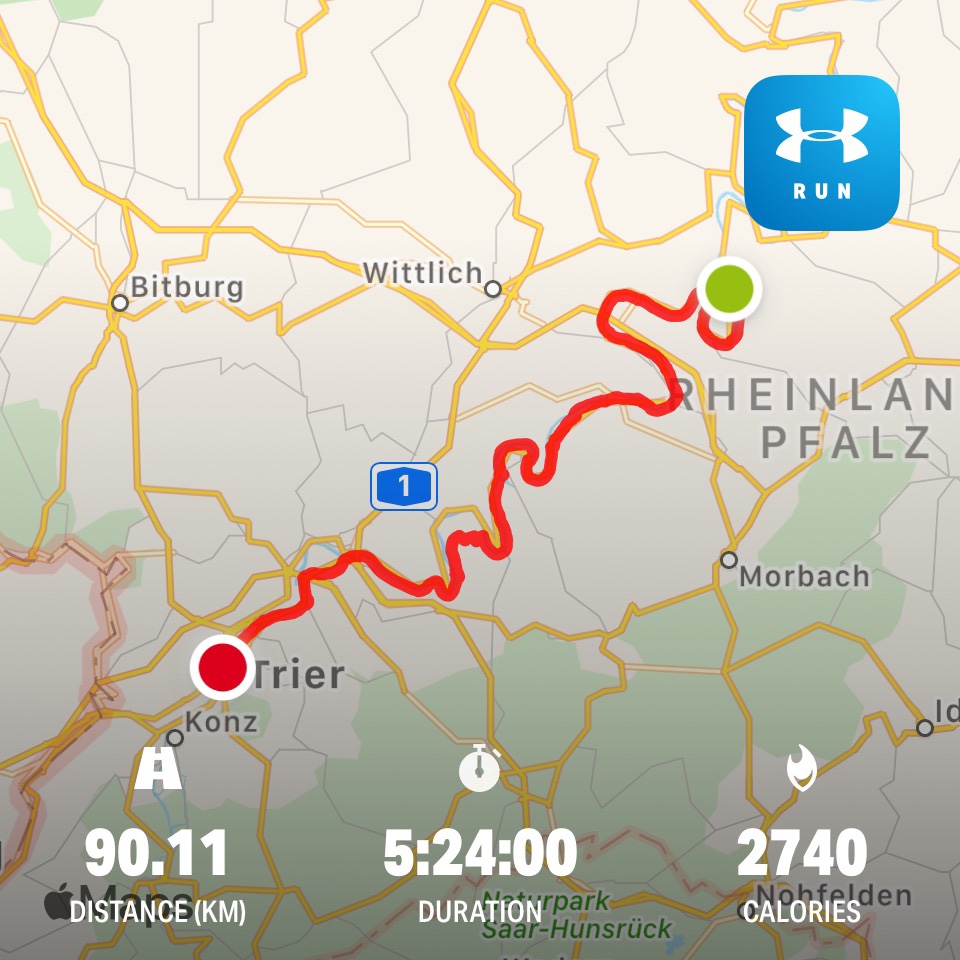 Just nu känner jag mig som en klubbad säl. Imorgon har jag tänkt att ta mig till Thionville i Frankrike. Det är runt 80km dit och då är det äntligen dags för en extra vilodag. Här är dagens åktur.