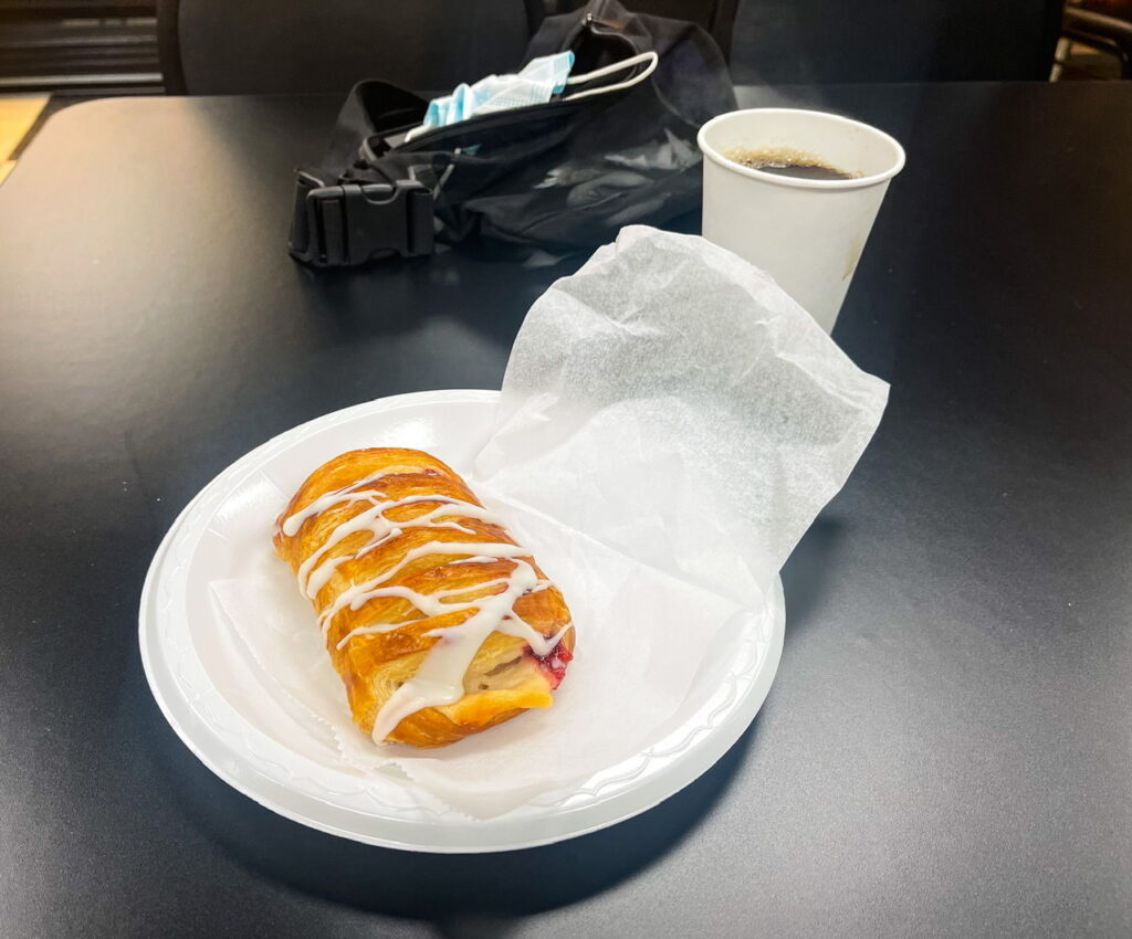 Dagens äventyr började med att klockan ringde 4:30. Jag var såklart redan vaken då. Det påverkade nog en del att jag somnade halv åtta igår kväll. Efter att ha ätit en kall burrito och plockat ihop mina saker så var jag redo för vägen. Mitt första stopp var efter 450m för en kopp kaffe, såklart.