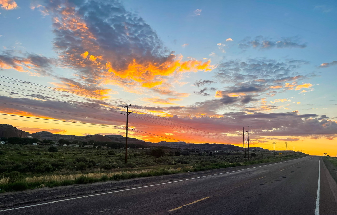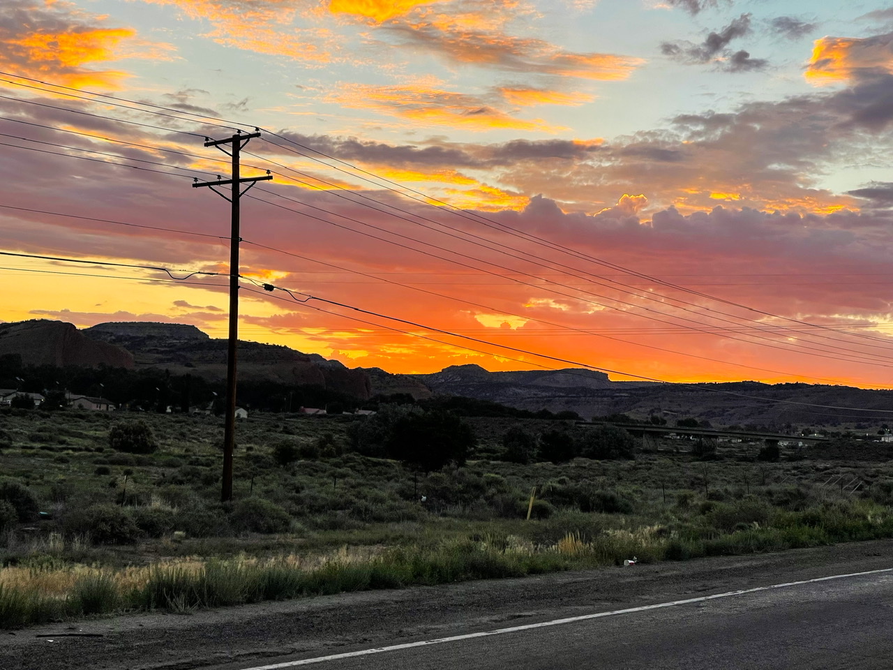Efter ett så delikat wienerbröd var det dags att attackera backarna upp till The Continental Divide. De var inte superbranta men det var konstant uppför hela tiden. Tydligen är det så att det regnet som faller väster om den platsen rinner ut i Stilla havet och följaktligen så rinner det som faller på östra sidan ut i Atlanten. Den här informationen faller så klart under avdelningen viktigt vetande. Innan jag kom så långt så hanns det med en snygg soluppgång.